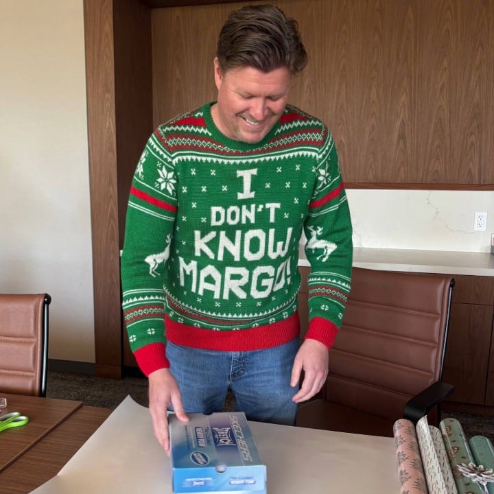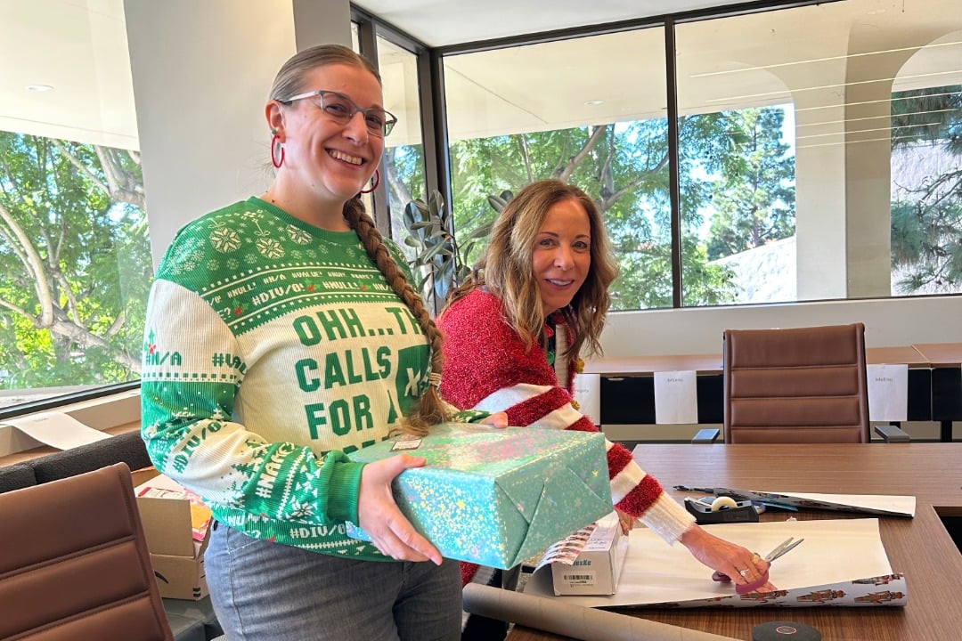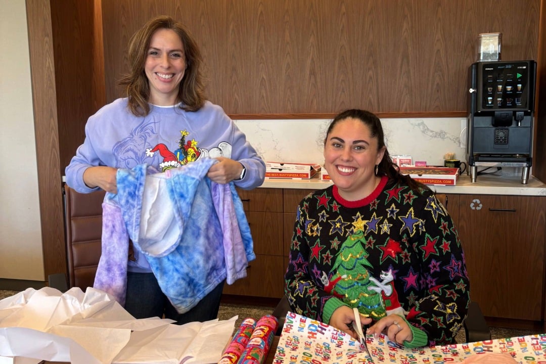 Each year, the Gift Drive turns into a team celebration, complete with a wrapping party and ugly sweaters. Team members come together to wrap each gift with care before delivering them to the United Way office.